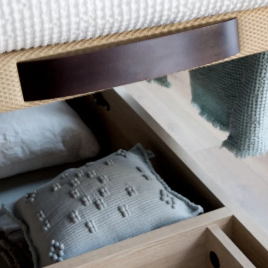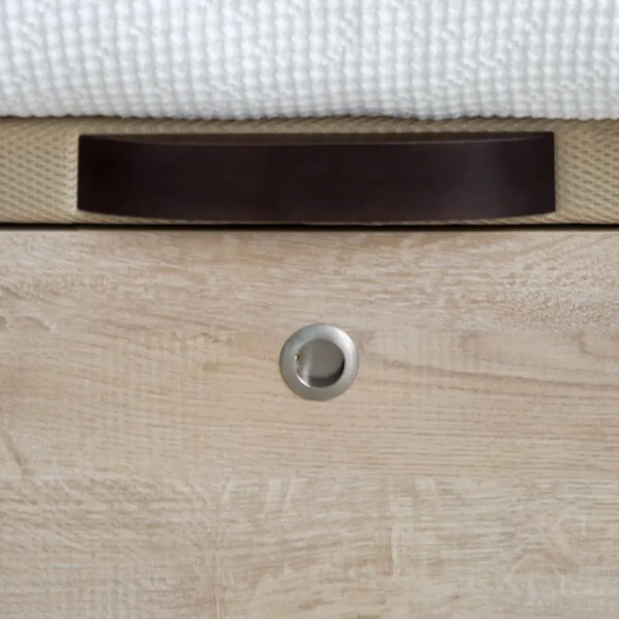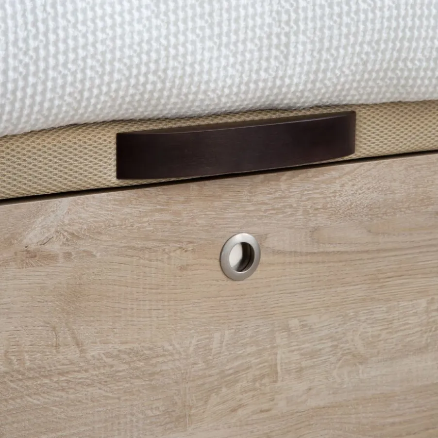 – El Canape En Acabado Roble Va Combinado Con La Tapa Tejido 3D Beige Y Tirador Wengue