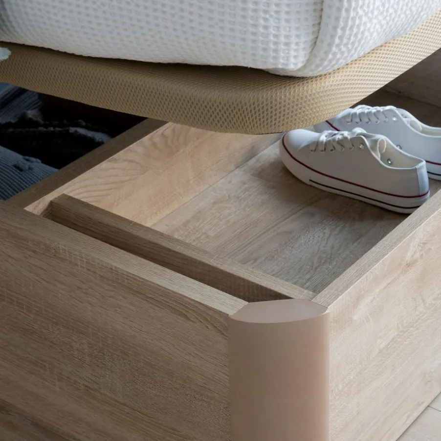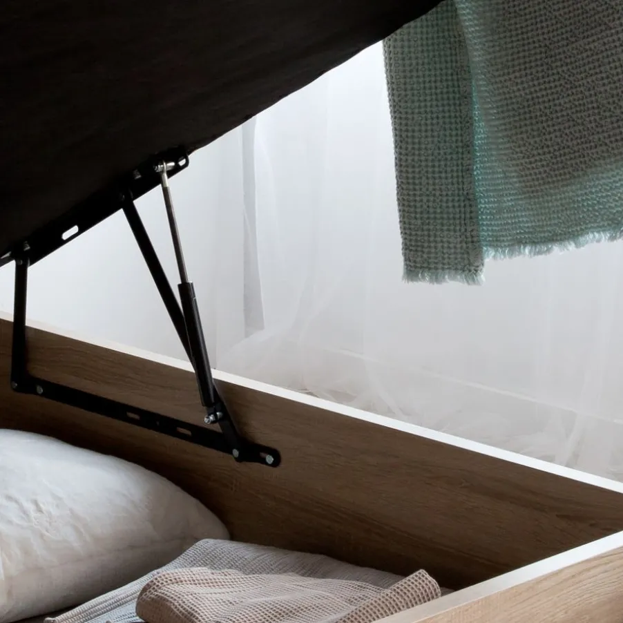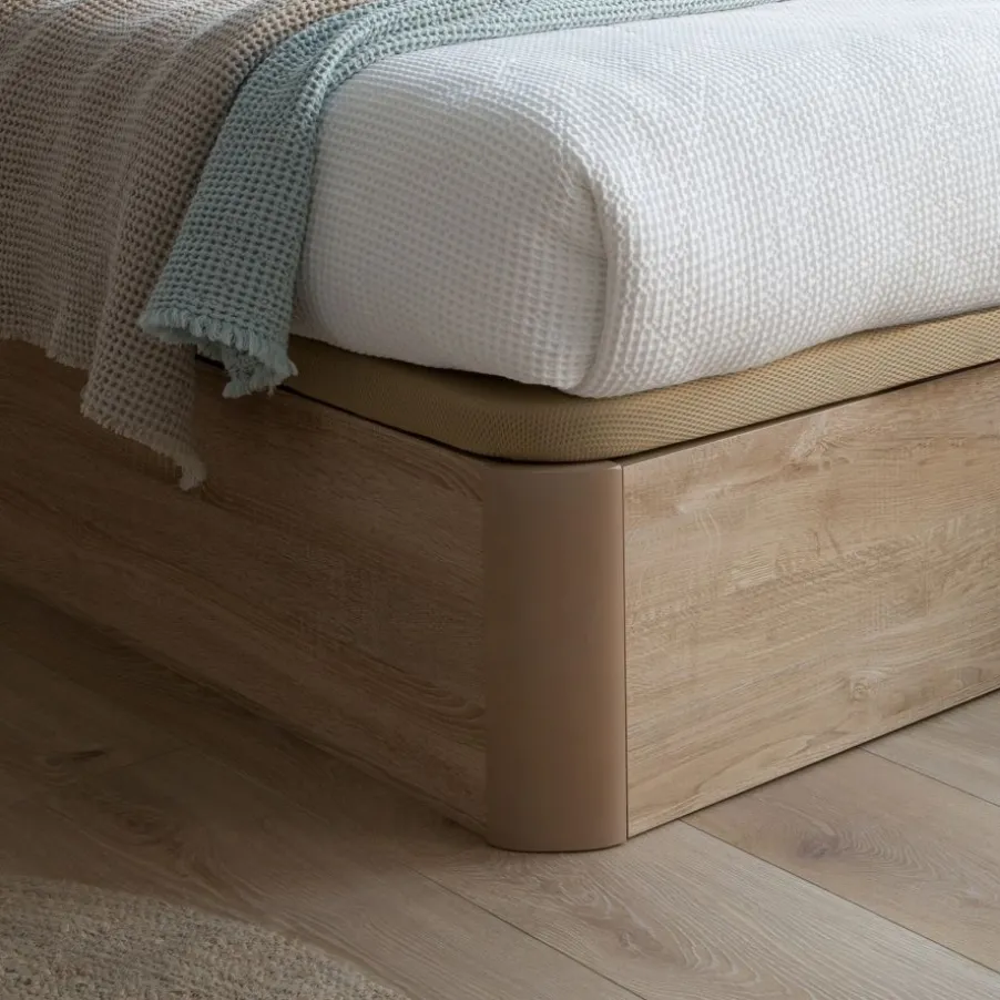 – El Canape En Acabado Roble Va Combinado Con La Tapa Tejido 3D Beige Y Tirador Wengue