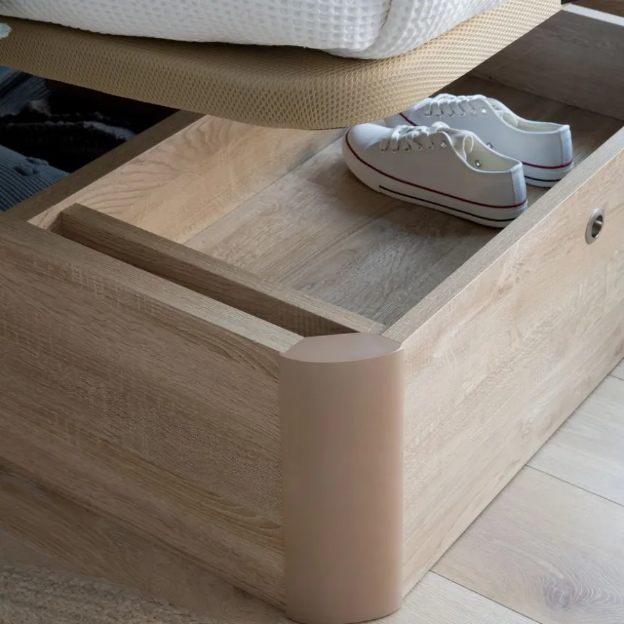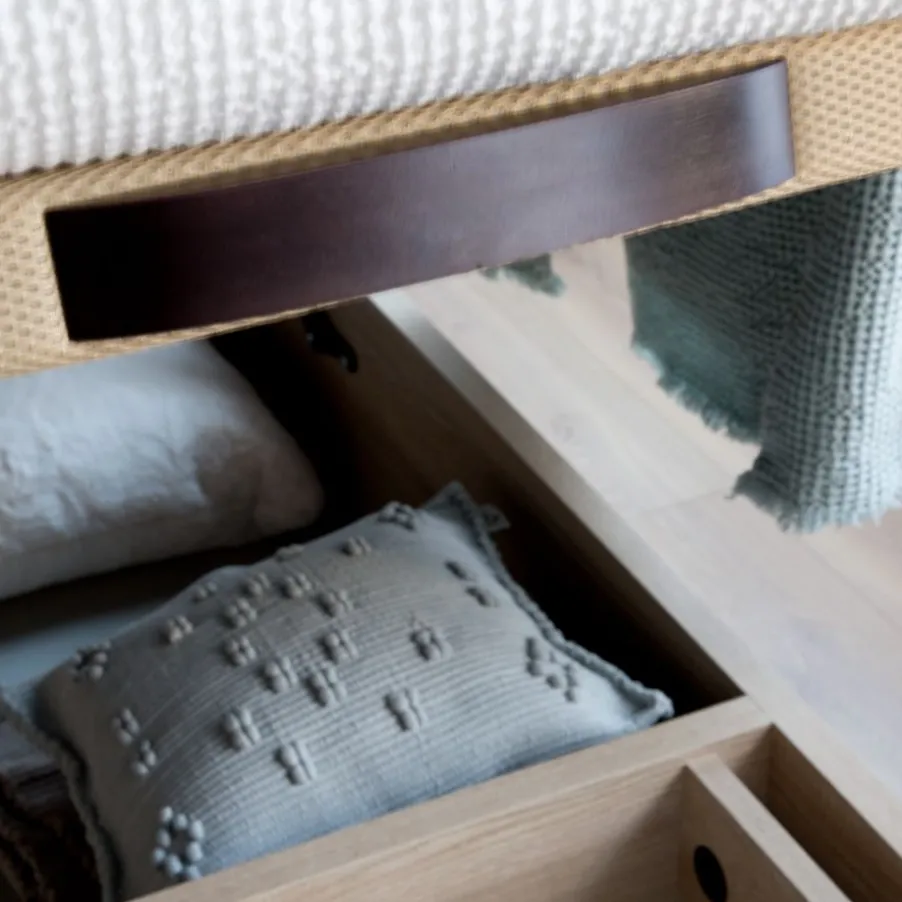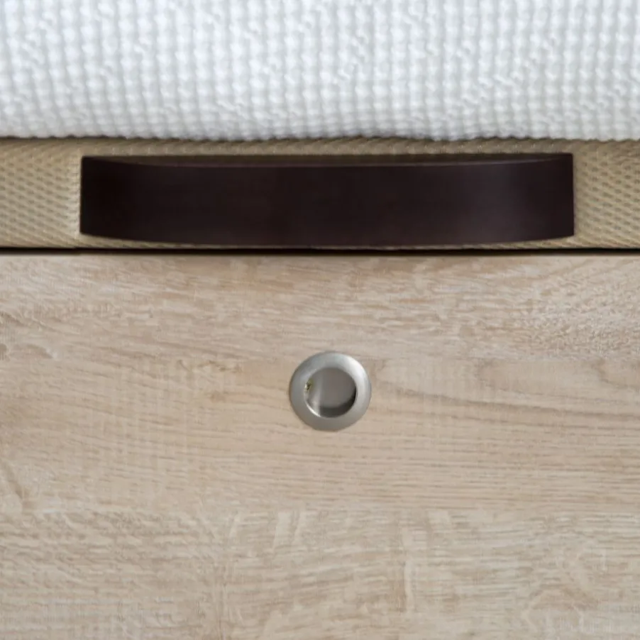 – El Canape En Acabado Roble Va Combinado Con La Tapa Tejido 3D Beige Y Tirador Wengue