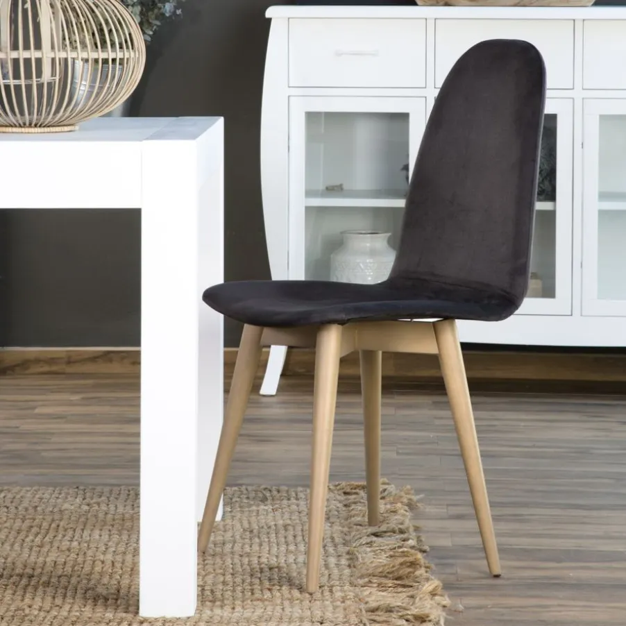 Silla Katharine Con Acabado De Patas En Natural, Tapizada En Acabado Black Onix. Serie Promo.