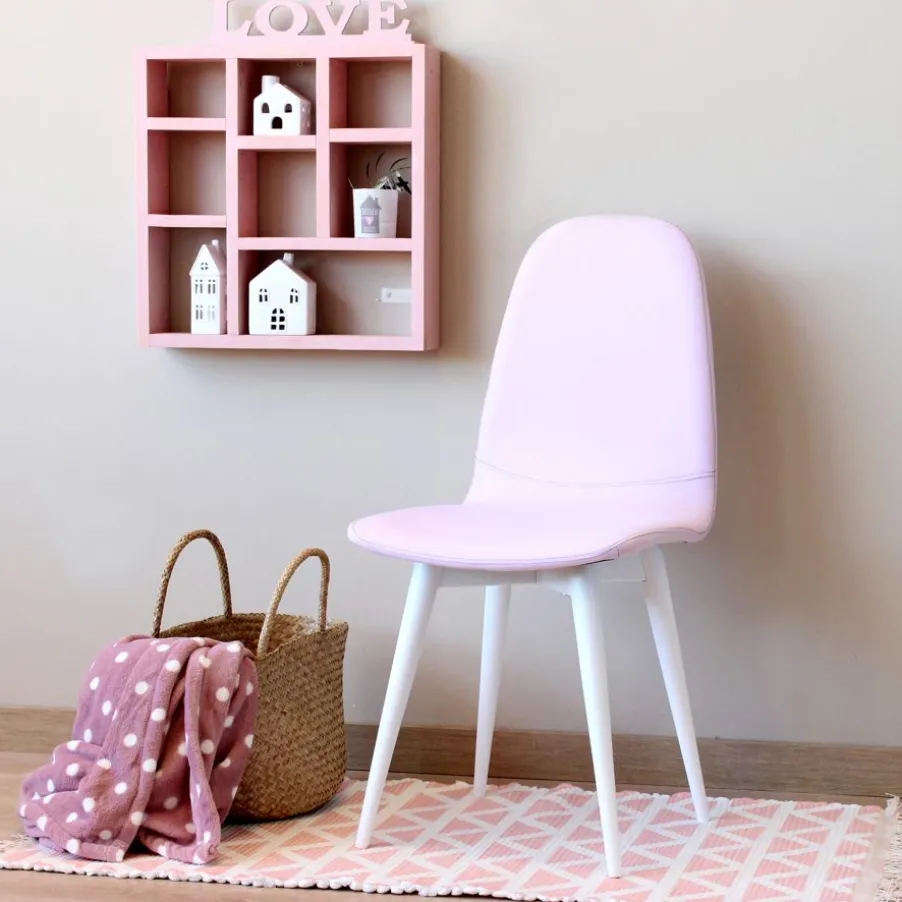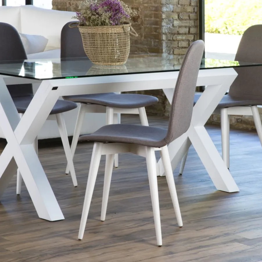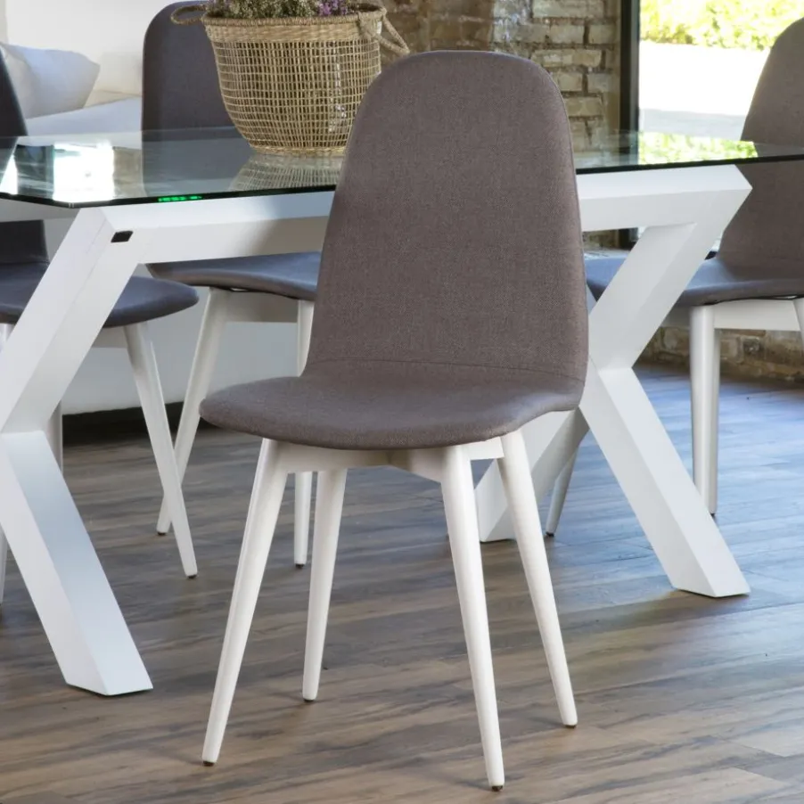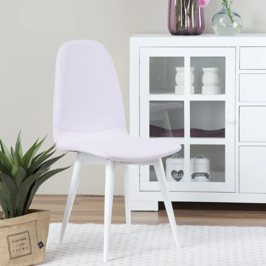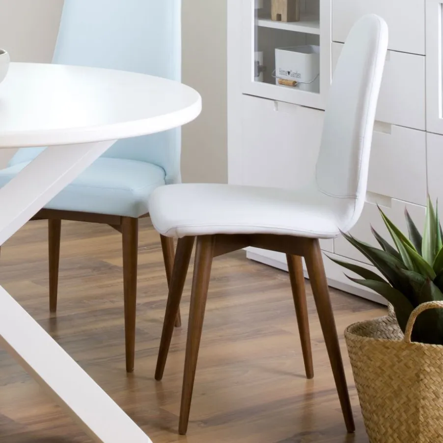 Silla Katharine Con Acabado De Patas En Blanco, Tapizada En Acabado Angel Vison. Serie 1.