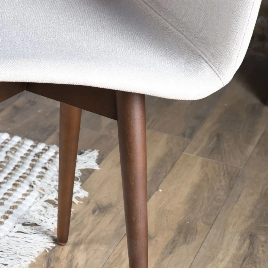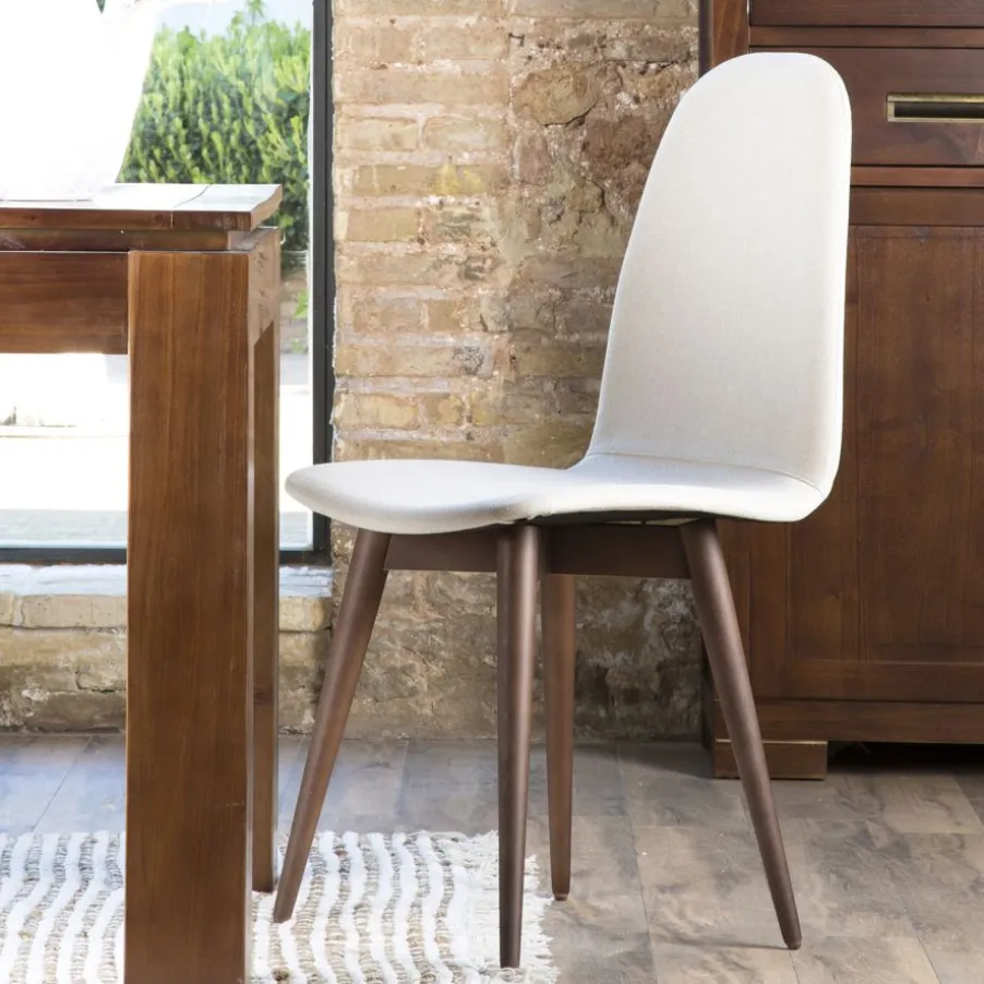 Silla Katharine Con Acabado De Patas En Teca, Tapizada En Acabado Angel Natural, Serie 1.